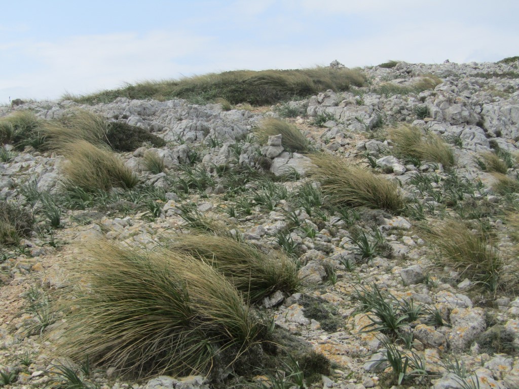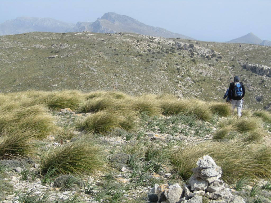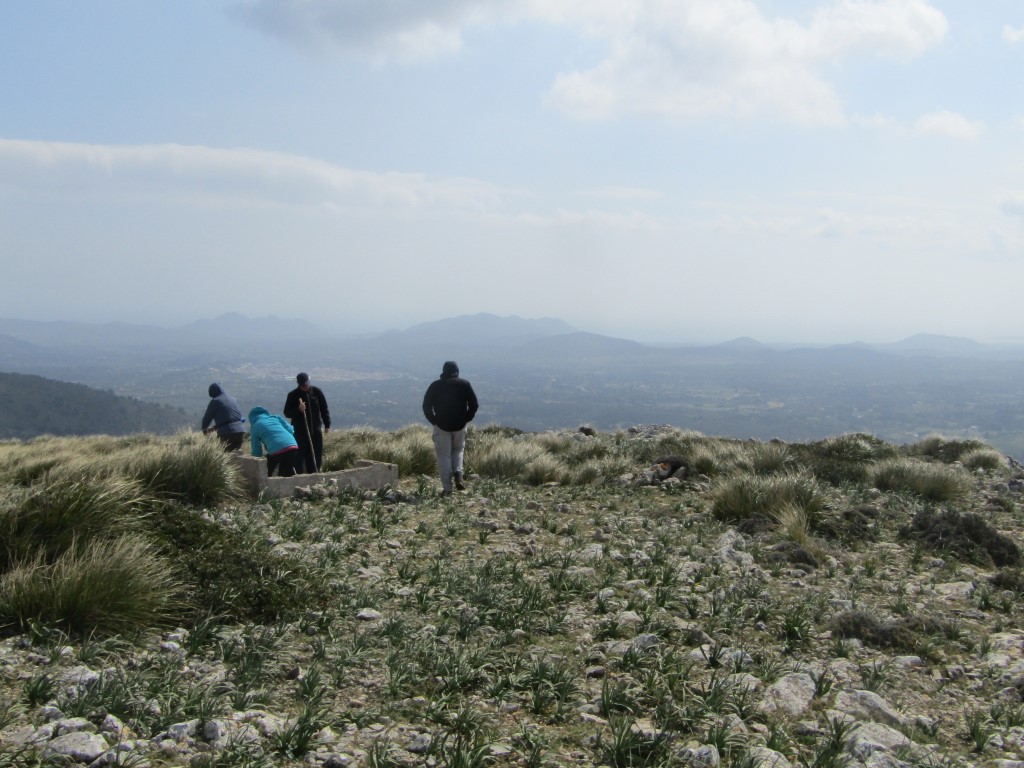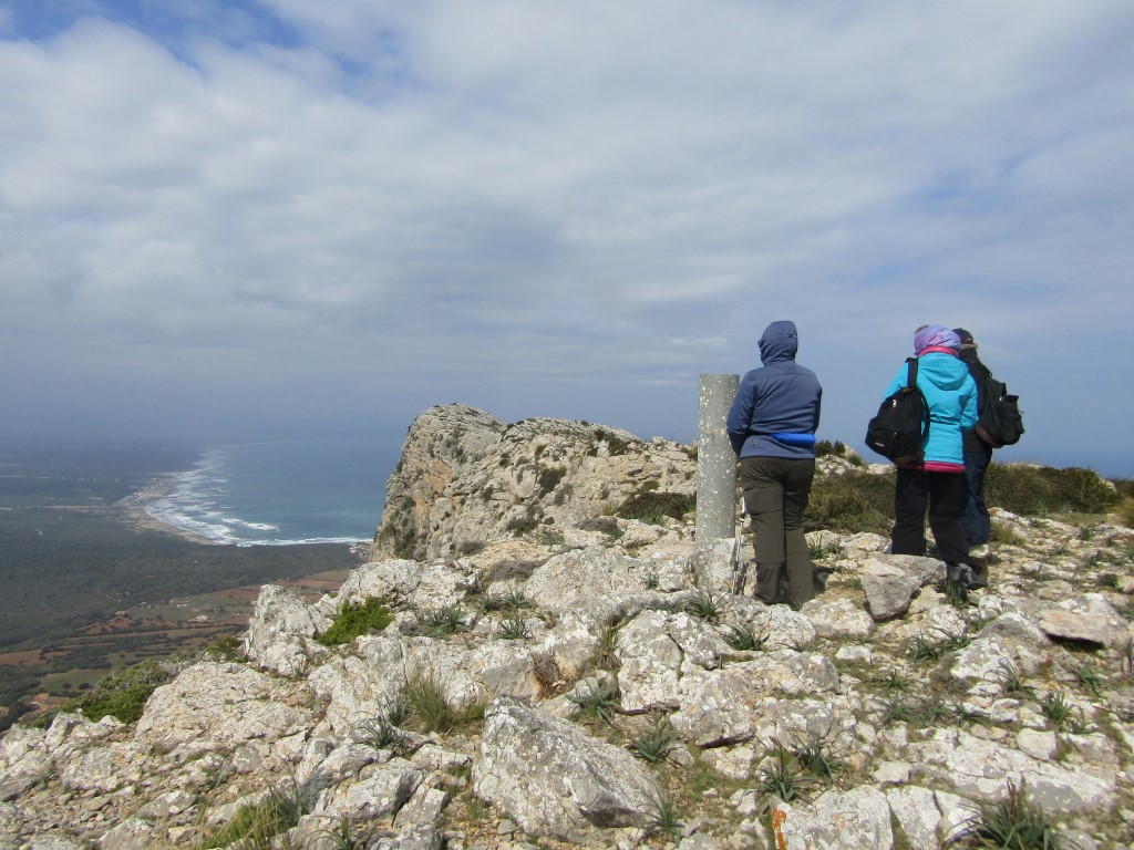 Da hat man uns für Heute nur Sonne und Wind versprochen, doch leider kam die Sonne erst auf dem Rückweg. Bei sehr stürmigen Wetter, schlechter Sicht und drohender Wolkenwand, erliefen wir die Strecke zum Ferrutx. O-Ton von Ede:“ bei schönen Wetter kann jeder wandern…“ Die Landschaft, die Ausblicke und die abschließende Steilwand des Ferrutx entschädigen für den starken Wind.